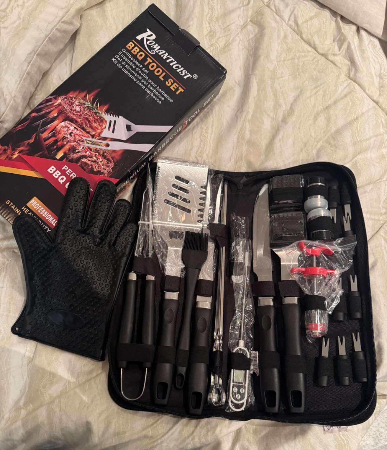 ROMANTICIST crafts heavy-duty stainless steel grill and griddle tool sets for outdoor cooking and home kitchens. With spatulas, tongs, thermometers, and more, our durable kits come in sleek cases, perfect for gifting dads or chefs. Elevate BBQs with professional-grade accessories built for lasting performance.